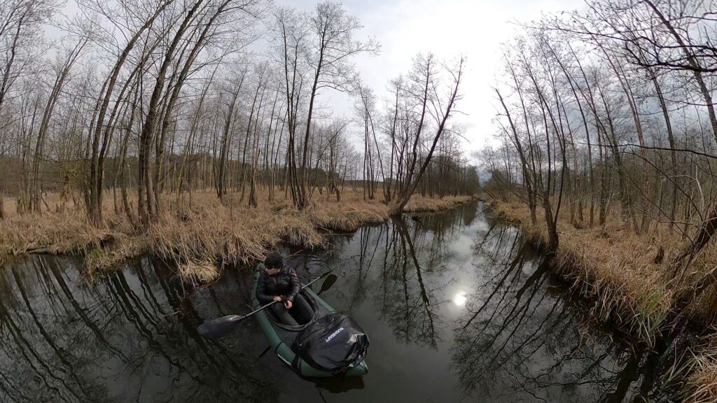 Po około 8 km spływu Struga odbija w lewo, a ja skierowałem się w prawo na rzekę Mochyńską (znacznie mniejszą), prowadzącą do Jeziora Mochyńskiego. To zdecydowanie najbardziej dziki i najładniejszy fragment całego szlaku.
