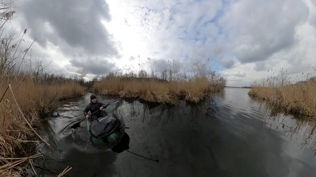 Zaraz po wypłynięciu z jeziora trafiamy na Południowy Kanał Obry, gdzie skierowałem się w prawo – tutaj był już wyczuwalny przeciwny nurt.
