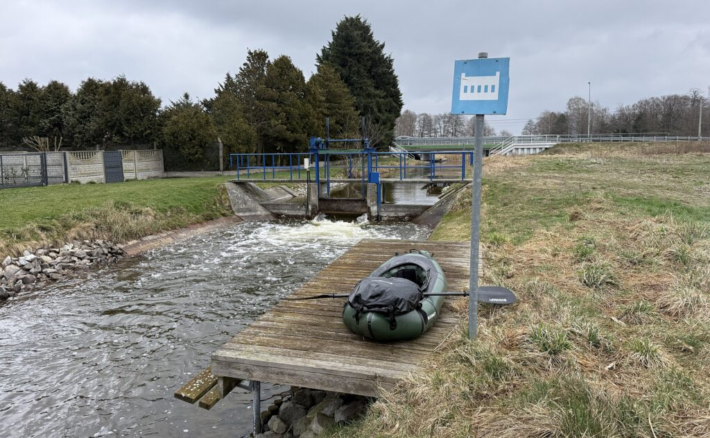 Zaraz za mostem mamy pierwszą, łatwą przenoskę na małym jazie. Kolejne dwie, naturalne przenoski czekały mnie za miejscowością Kaszczor. Poza tym na spływie nie było żadnych poważniejszych przeszkód.