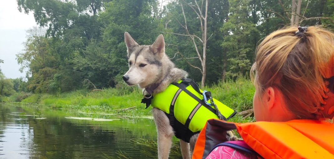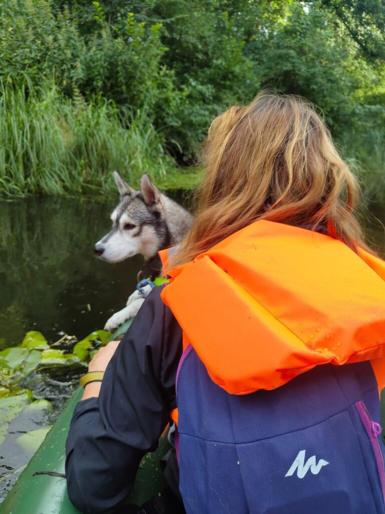 Warto również pamiętać, że z psem jak z dzieckiem – najlepiej na początku go zmęczyć. Czyli spływ organizujemy w ten sposób, że najpierw idziemy w górę rzeki, tak żeby pies się wybiegał, a później wskakujemy do packrafta i wracamy na miejsce startu. Po takim spacerze pies będzie znacznie spokojniejszy na spływie.