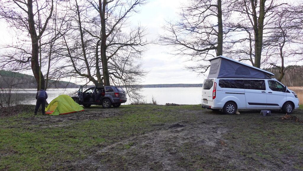 Biwak przy samej plaży Jeziora Niesłysz, które ma bardzo czystą, turkusową wodę (dojazd od miejscowości Borów).