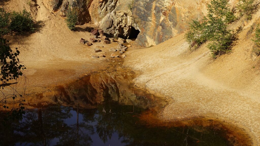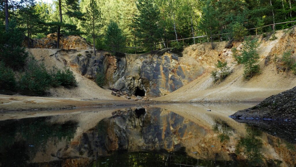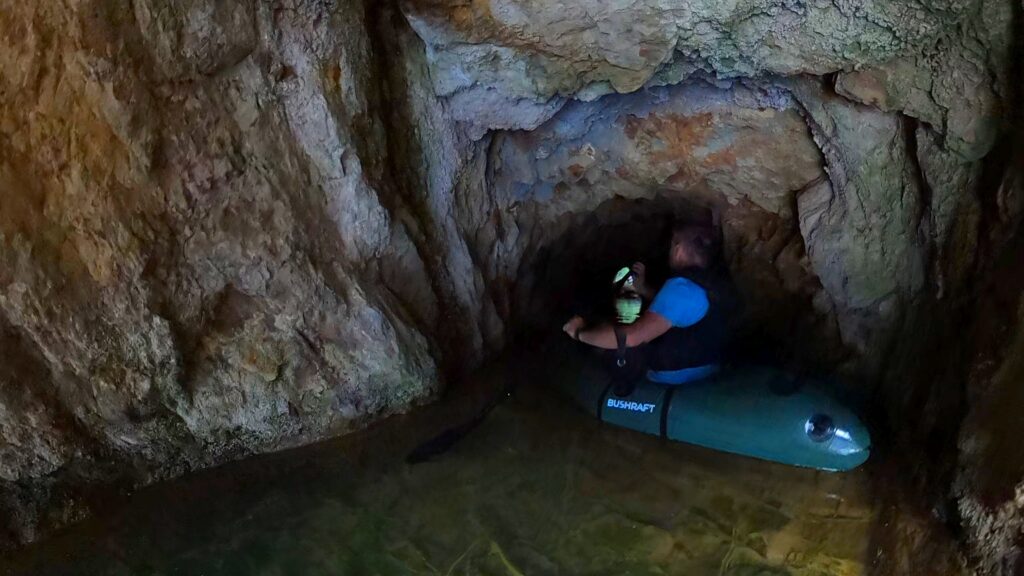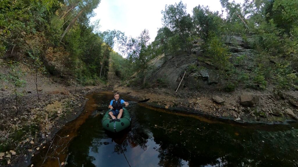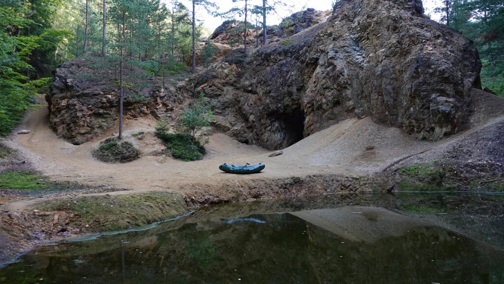 Do pirytu jestem trochę zrażony. Kiedy rozpoczynałem przygodę z amatorskim przepłukiwaniem złota wydawało mi się, ze trafiłem na prawdziwą żyłę tego drogocennego kruszcu. Jakże byłem zawiedziony, kiedy bardziej doświadczeni koledzy uświadomili mnie, że to tylko piryt (złoto głupców). Na pirycie zawiodła się również moja nauczycielka, która mówiła o tym, że w przyrodzie nie występują idealne kształty. Kiedy przyniosłem jej niemal idealny pirytowy sześcian, trudno było jej uwierzyć, że został wykształcony przez przyrodę, a został ;). Trzecie spotkanie z pirytem było magiczne. Odwiedziłem stare wyrobiska po kopalni pirytu, która istniała na pograniczu Rudaw Janowickich w XVIII i XIX wieku. Chociaż samego pirytu tutaj nie spotkałem, to Kolorowe Jeziorka, świadczą o występowaniu na tym terenie różnych minerałów. Na wszelki wypadek, na swoją przygodę, zabrałem packrafta, dzięki czemu udało mi się przepłynąć przez krótką jaskinię. Mały, ale bardzo wytrzymały Bushraft Survival, okazał się idealną jednostką do takich eksploracji.