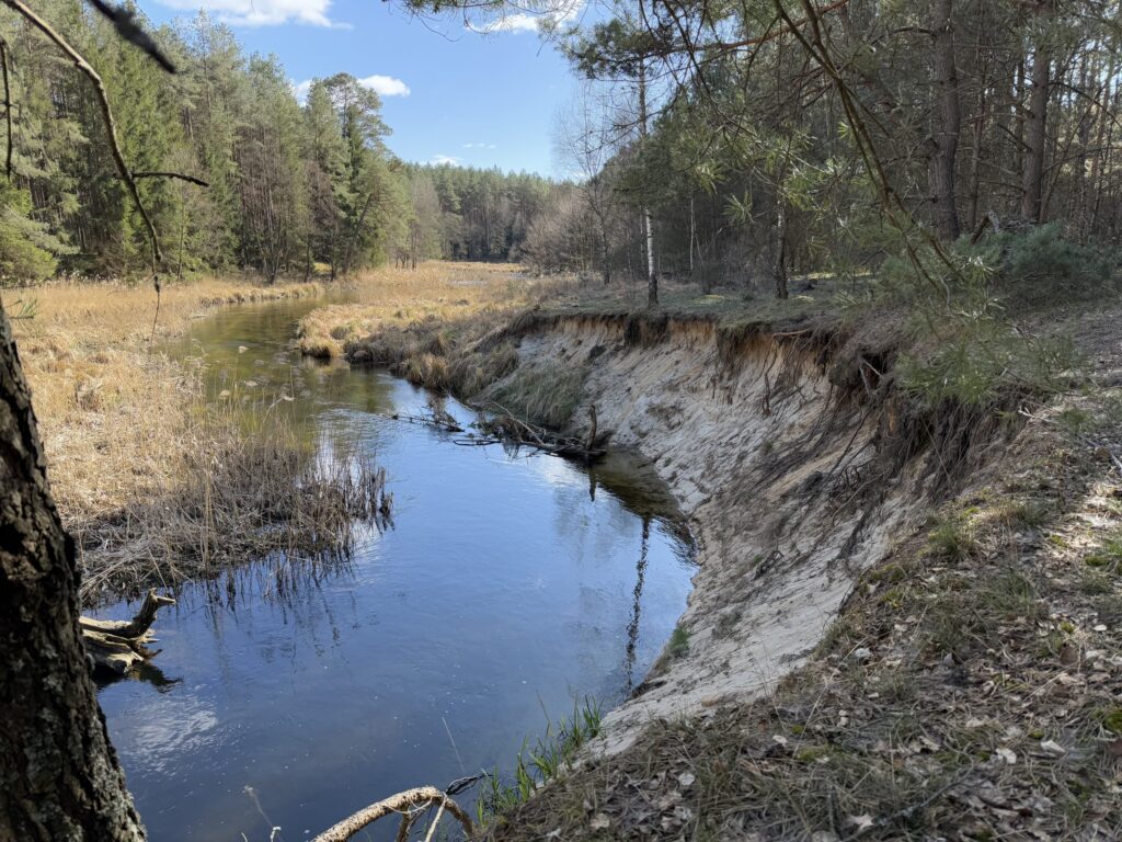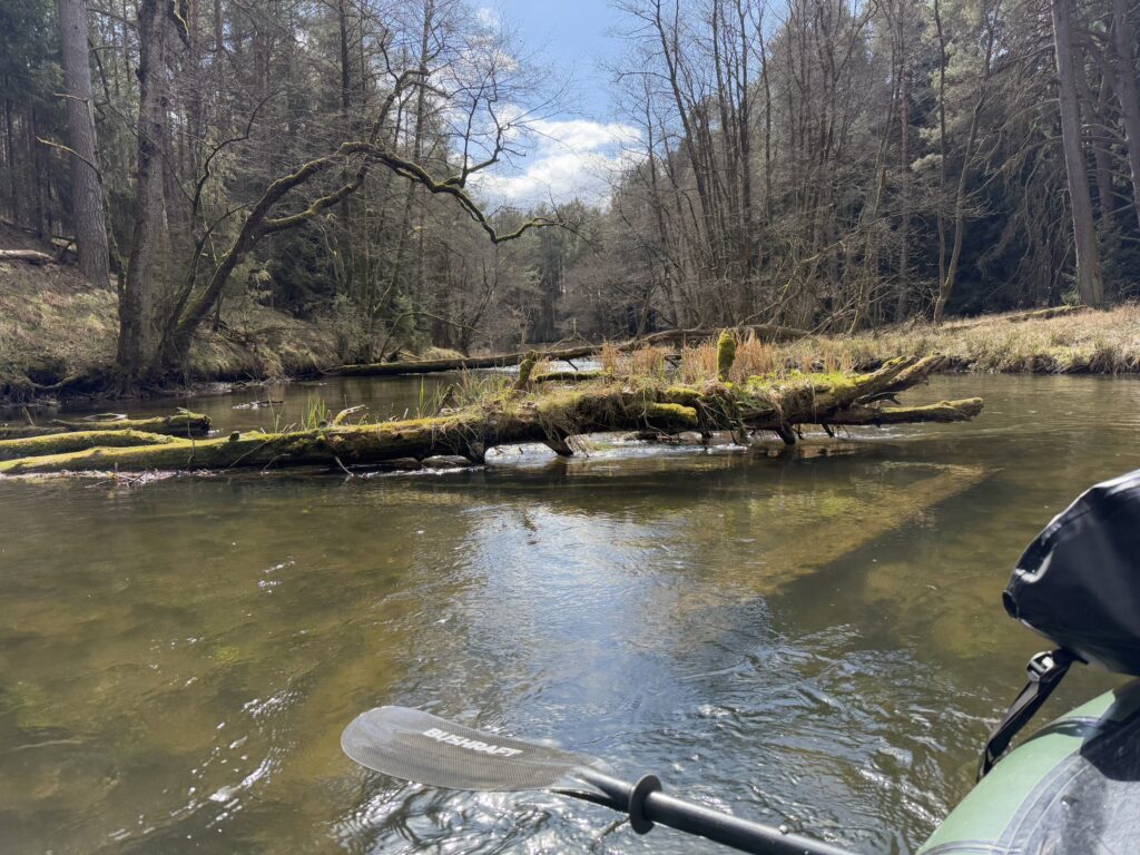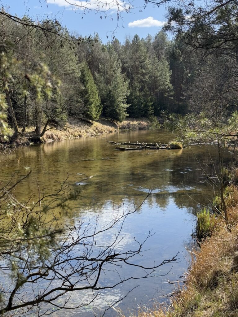 Drugą część trasy możemy pokonać na rowerze lub pieszo. Blisko rzeki przebiega zielony szlak turystyczny, jednak nie jest on dobrze oznaczony i warto wspierać się GPSem. Jeżeli jedziemy rowerem, warto skorzystać ze ścieżki leśnej oznaczonej na mapie.