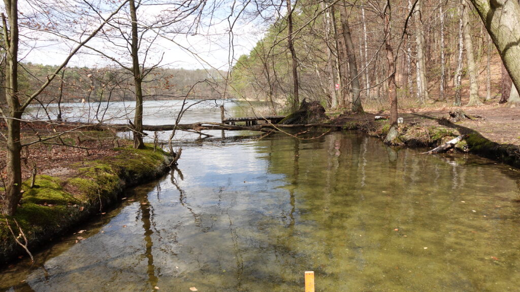 Rozpoczęcie spływu przy Zamku Joannitów w Łagowie (bezpłatny parking, restauracja). Przepłynięcie Jeziora Ciecz w kierunku przesmyku do Jeziora Łagowskiego. W obu jeziorach bardzo czysta woda – widoczność na około 2 metry. Przepłynięcie przez całe Jezioro Łagowskie do „Kozackiej Plaży” – piękny dziki teren.