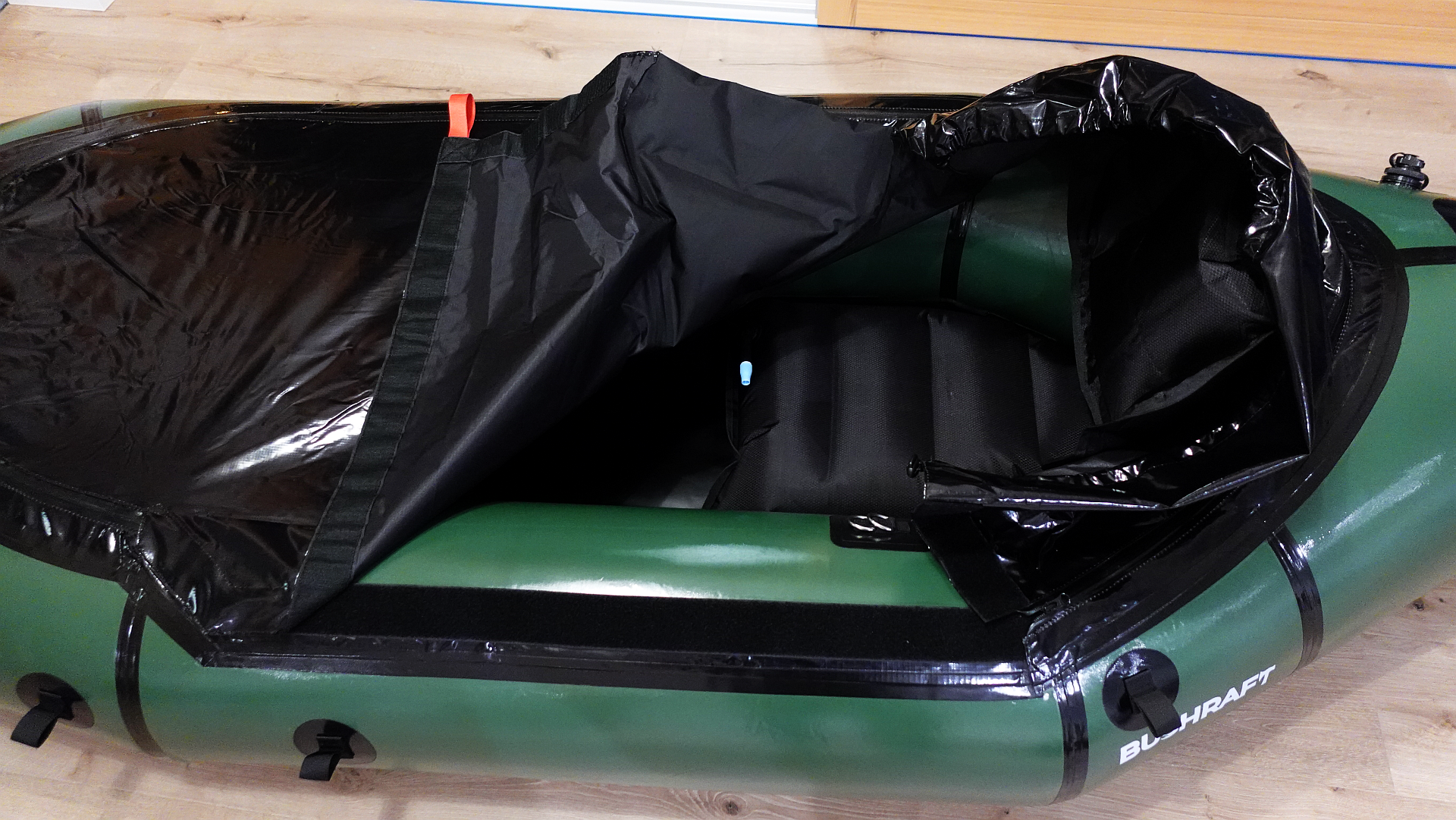 W packrafcie celowo zrezygnowano z zamków do przechowywania bagażu w burtach. Umożliwia to spływ w trudnym terenie, bez obawy o uszkodzenie czy zawilgocenie systemu. Dzięki temu packraft jest bardziej odporny na wilgoć, piasek czy błoto. W packraftach z zamkami do przechowywania bagażu, wypełnienie packrafta ciężkim ekwipunkiem, utrudnia również pokonywania przenosek, ponieważ cały zestaw musimy przenosić razem i często potrzebna jest asysta drugiej osoby. Zamki w packrafcie po jakimś czasie tracą na szczelności i okazuje się, że i tak musisz wozić bagaż w dodatkowych workach, a to znacznie zwiększa wagę zestawu.