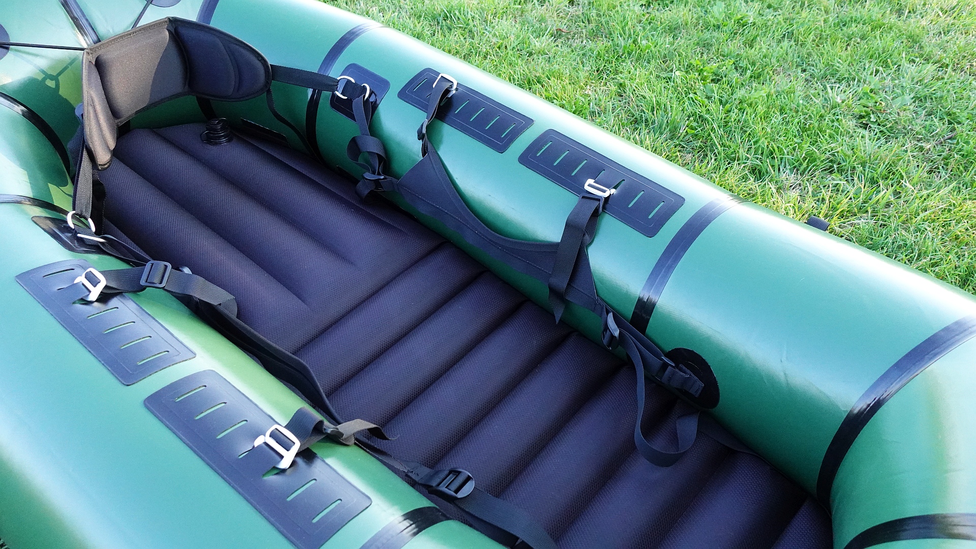 Packraft w standardzie posiada również pasy stabilizując, pomagające zachować integralność z packraftem, a także wykonywanie przechyłów czy eskimosek dla bardziej zaawansowanych osób.