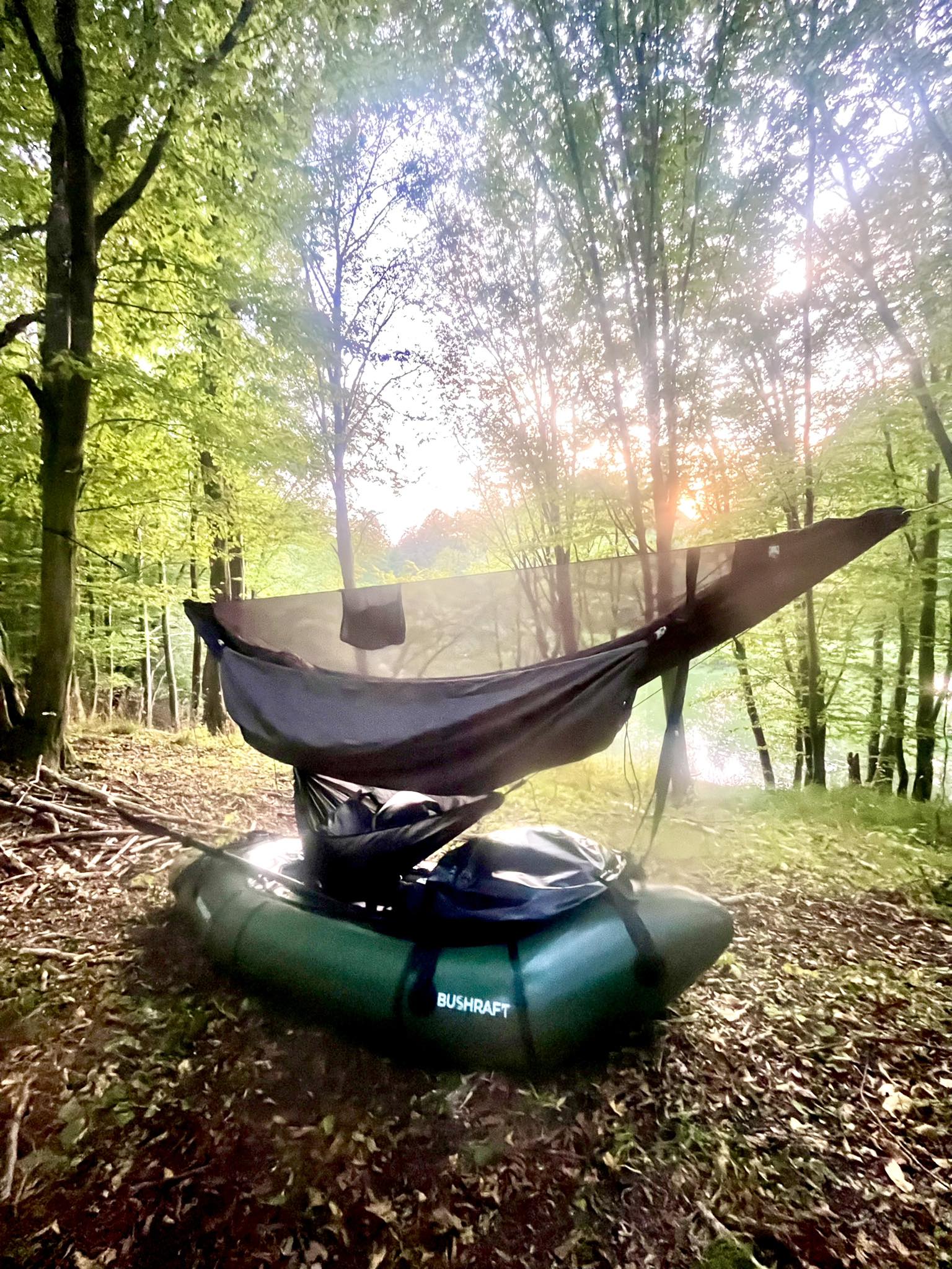 Choć packraft jest niewielki, może służyć również jako izolacja od zimnego podłoża lub osłona przed deszczem. Umożliwia magazynowanie deszczówki, a po wlaniu wody z rzeki i podgrzaniu jej nad ogniskiem – staje się wygodną biwakową wanną.