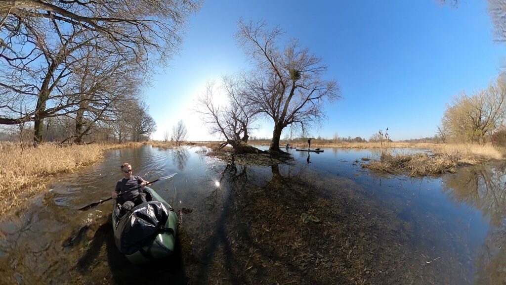 Na koniec spływu wpłynęliśmy jeszcze do rzeki Widawy, gdzie czekają piękne leśno-łąkowe rozlewiska. Woda rozlana szeroko po łąkach, cisza, śpiew ptaków i pierwsze prawdziwe oznaki nadchodzącej wiosny.