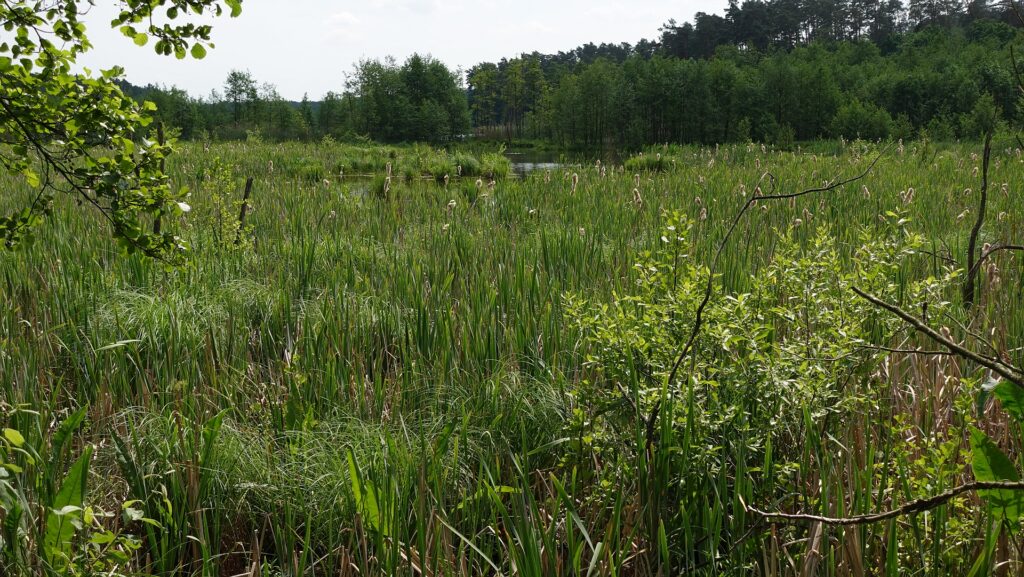 Składam packrafta i pięknym zielonym szlakiem, przy rezerwacie Bachotek, wędruje przez las. Linią brzegową dochodzę do miejscowości Grzmięca i ścinam nieco zielony szlak, szlakiem bobrowym, który prowadzi przy samej Skarlance. Po powrocie na zielony szlak, dochodzę nim już do miejsca rozpoczęcia spływu.