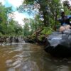 Kiedy rano obudziłem się nad Jeziorem Skarlińskim przy miejscowości Biedaszek, poszedłem sprawdzić stan wody w Skarlance, ponieważ wędkarze powiedzieli mi, że teraz Skarlanką nie da się spłynąć. Niestety ich słowa potwierdziły się – stan wody był taki niski, że spływ byłby raczej spacerem. Byłem tym trochę zawiedziony, ponieważ dalszy odcinek Skarlanki łączący kilka jezior, wydawał mi się nieco nudnawy dla packrafta. Jakże się myliłem!:)