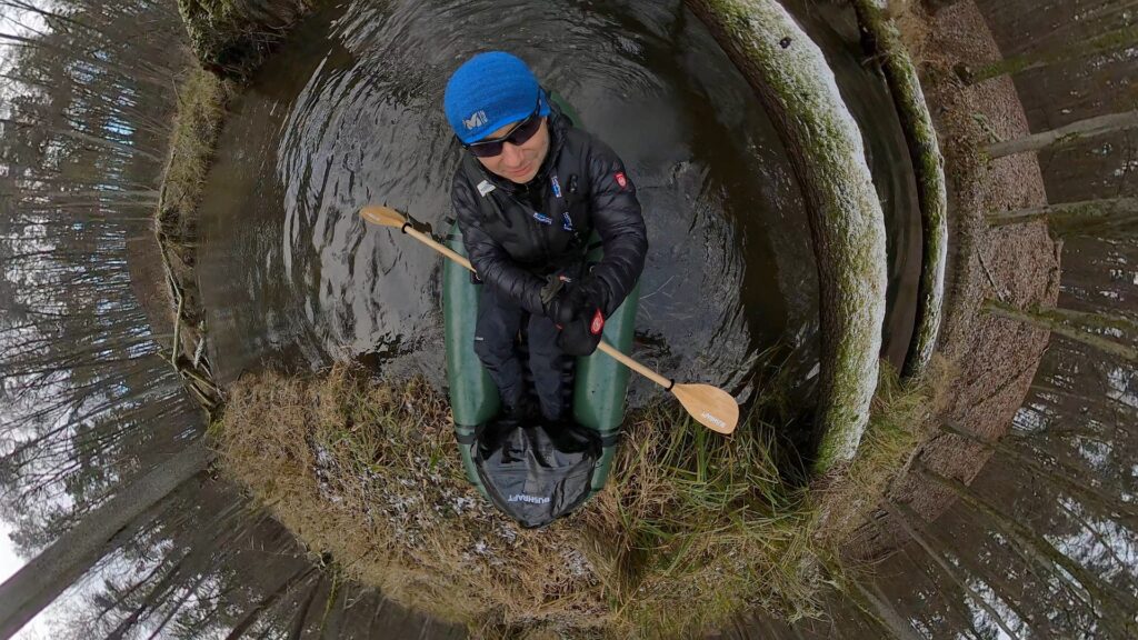 W samym lesie dzieje się bardzo dużo. Czekało na nas kilkadziesiąt przenosek i zwałek, które staraliśmy się pokonać bez wysiadania z packrafta. Liczne meandry świadczą o tym, że Skrwa płynie tutaj całkowicie naturalnie.