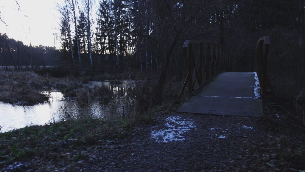 W drodze powrotnej, po zapadnięciu zmroku, księżyc święcił nam tak jasno, że w lesie nie musieliśmy używać czołówek. Przy samej rzece biegnie niebieski szlak, jednak ze względu na późną porę, część trasy pokonaliśmy duktem leśnym. Przy osadzie Krzywy Kołek, na pięknym otwartym terenie, między pierwszym i drugim mostkiem, znajdują się zadaszone wiaty piknikowe.