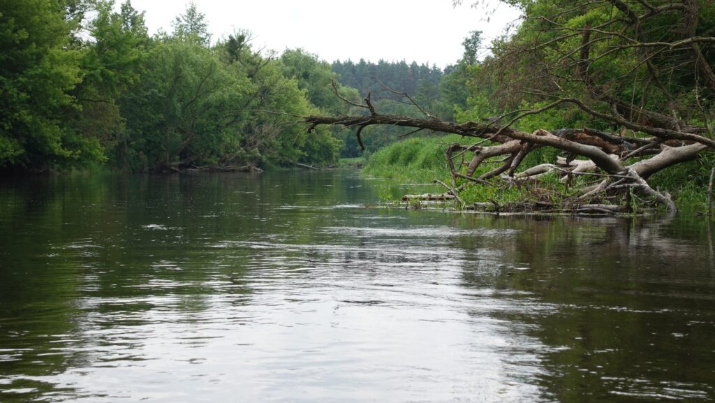 Co ciekawe, Drwęca jest rezerwatem na całej swej długości. Ochronie podlega środowisko wodne i bytujące w nim ryby, takie jak pstrąg czy łosoś szlachetny. Ze względu na pioruny i burzę, postanowiłem zakończyć spływ na 16 kilometrze, gdzie znalazłem ładną plażę i wyjście z wody.